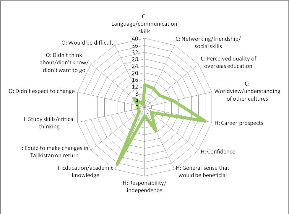 Figure 4: Codings of free text responses to the question ‘Before you started studying abroad, how did you think that study abroad would change you?’