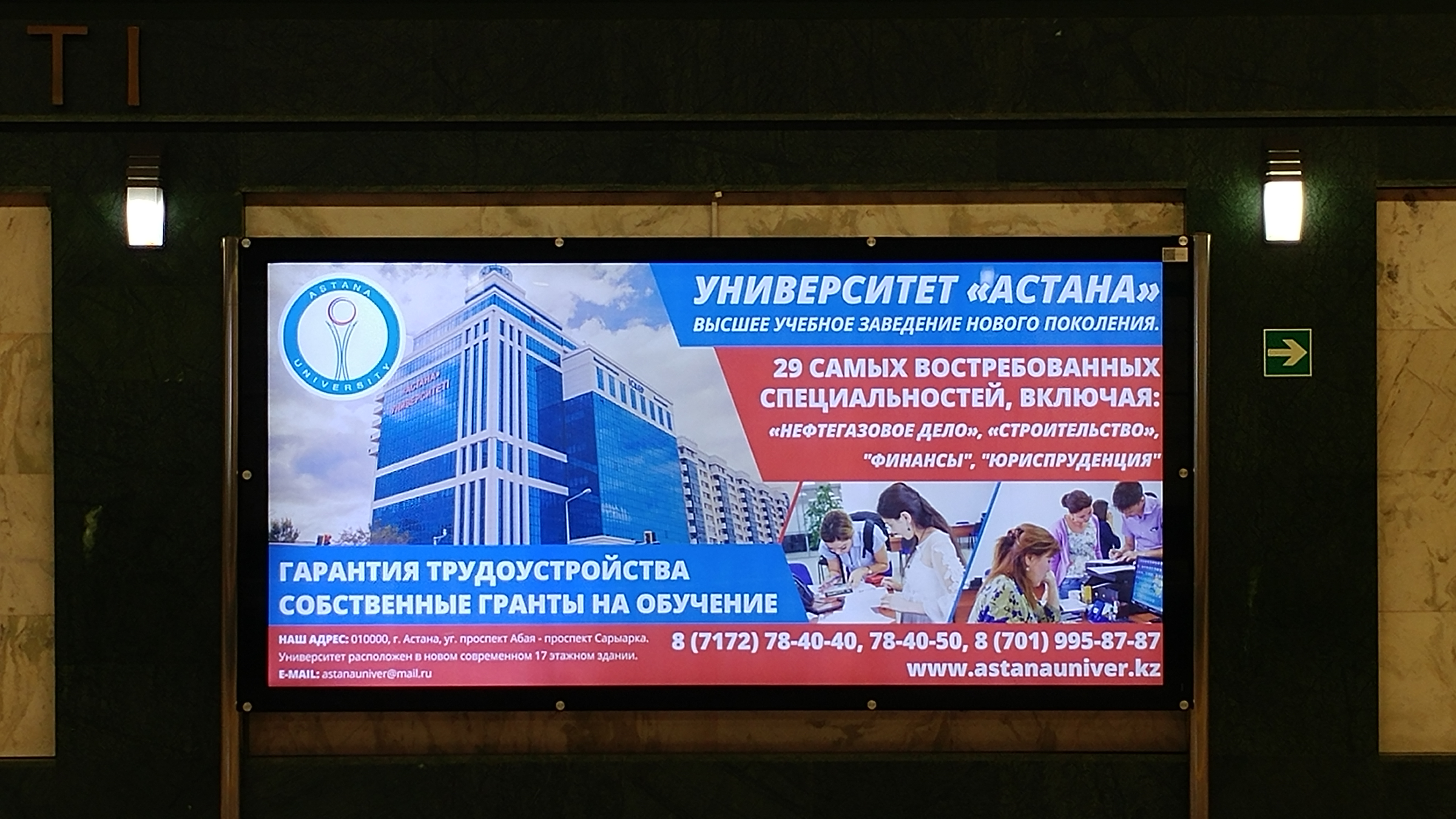 More subway advertising for the “higher education institution of a new generation”, University of Astana, Astana, Kazakhstan