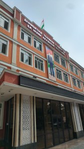 The President’s image looms large on most public buildings, Tajik Technical University, Dushanbe, Tajikistan